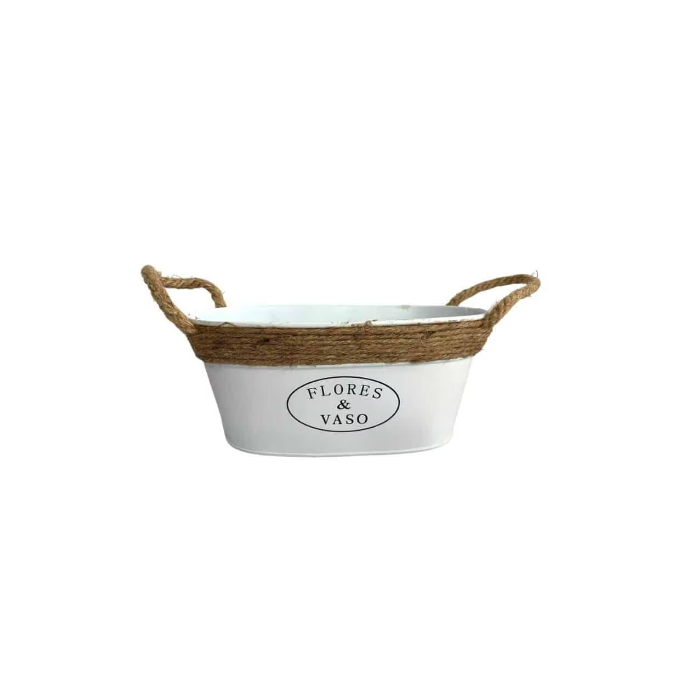 Cachepo Arranjo Flores & Vaso Floreira Metal E Alça De Corda