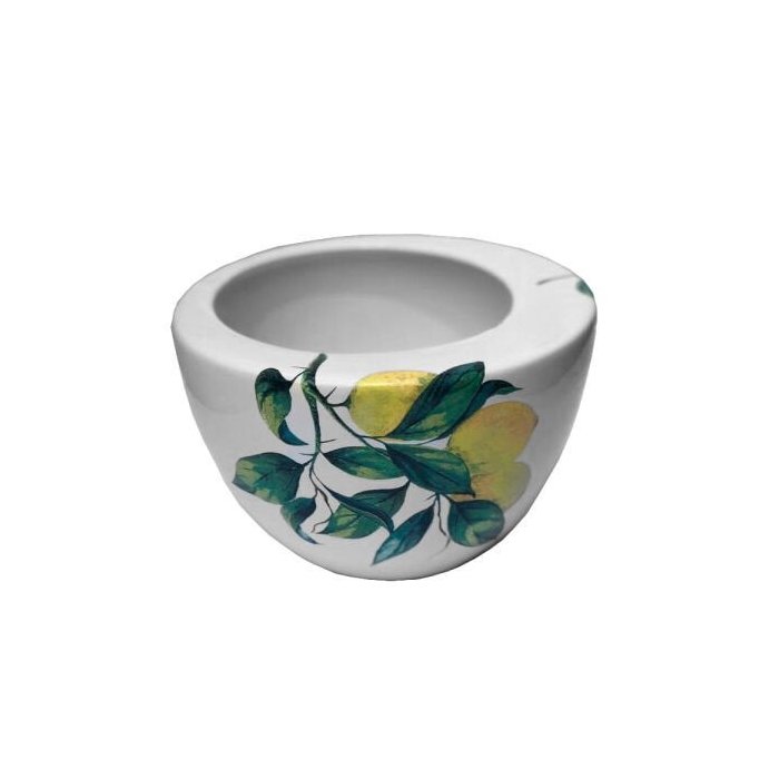 Cachepot produzido em cerâmica com toda a elegância e cuidado que a Casa Bonita oferece. A peça é moderna e sofisticada, com pintura branca e limões amarelos desenhados que contrastam com as folhas verdes dos galhos.
