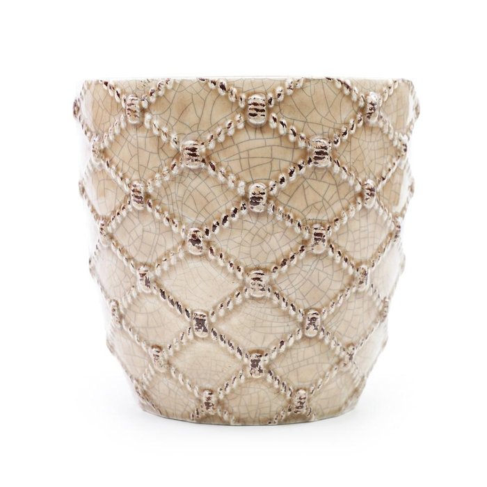 Cachepot Decorativo em Ceramica Circular Bege Trancado 9,5cm Bege