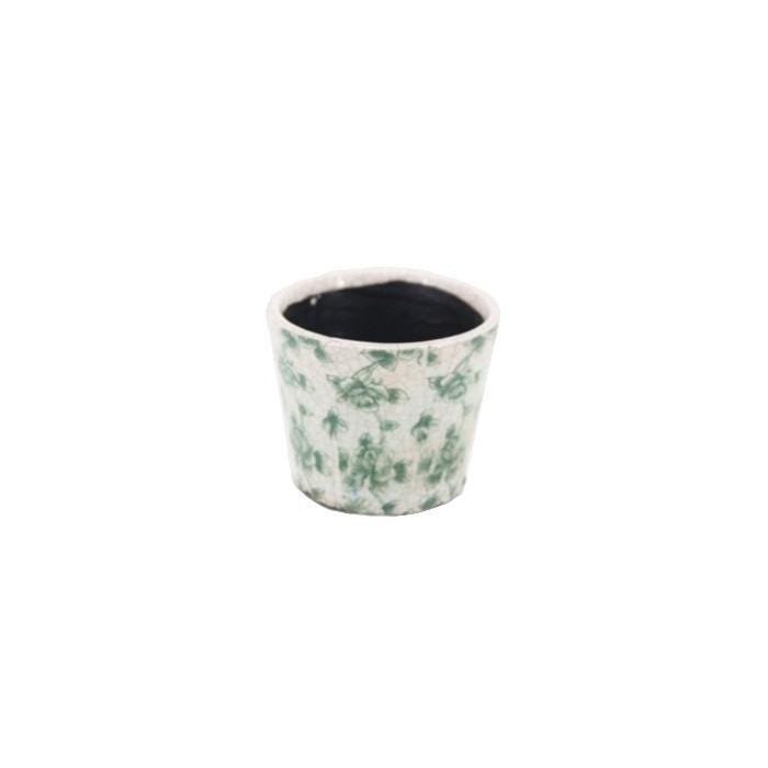 Cachepot em Cerâmica com Desenho de Flores Verde