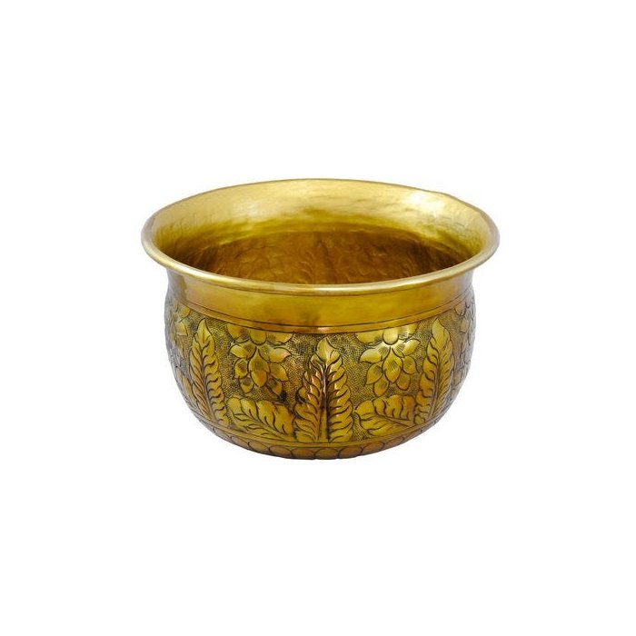 Cachepot Redondo de Alumínio Folha Dourada P Dourado