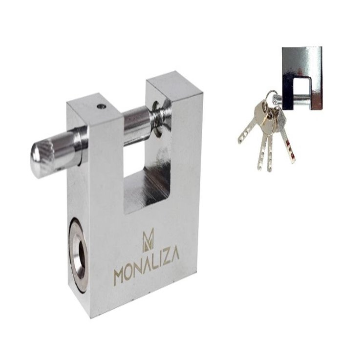 CADEADO GRANDE 50MM BARRA TRANVERSAL BLINDADO ANTI FURTO 4 CHAVES PORTA PORTAO TRAVA ROUBO PRATA