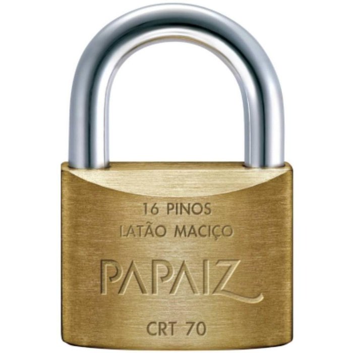 Cadeado Com Chave Tetra de CRT70 em Latão PapaizProduzidos com matérias-primas de primeiríssima qualidade, sistemas exclusivos de segurança e tecnologia sempre atualizadas, os cadeados da Linha Clássica são sinônimos de proteção e referência mundial de qualidade.Segurança quadruplicada: A Linha Tetra-Chave é produzida em latão maciço e seu sistema de chave com 4 lados permite mais de 40 milhões de combinações de segredo, dificultando a sua violação.Informações Técnicas:Produzido em latão maciço, haste de aço cementada e cromada. 2 tetra-chaves de latão niqueladas. Medidas: Largura: 70 mmAltura: 51mmAltura da Haste: 42mmEspressura da Haste: 12mmUtilização:Portões IndustriaisPosto de Gasolina (Bombas), Estacionamento e Portões Comerciais