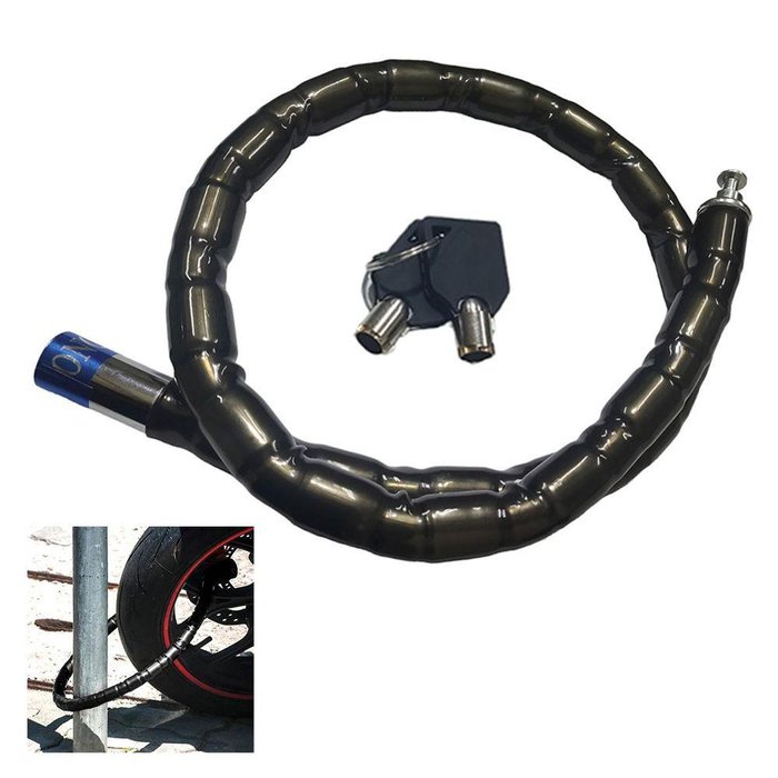 O cadeado é o complemento perfeito para proteger sua bicicleta ou moto com tranquilidade e segurança. Garante uma proteção solida e confiavel. Possui comprimento de 1 metro, essa trava oferece a flexibilidade necessária para fixar seu veículo em qualquer ponto fixo.Caracteristicas:Cadeado