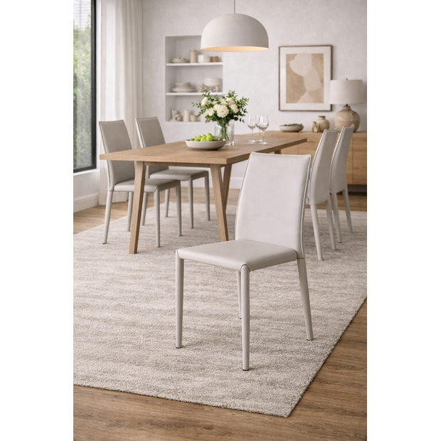 Cadeira tradicional e confortável, possui revestimento sintético em PVC. Cadeira de jantar para uso domestico com Armação de metal e tubos de aço em 1,0mm de espessura , com revestimento sintético em PVC, com quatro pernas de apoio e sem braços.