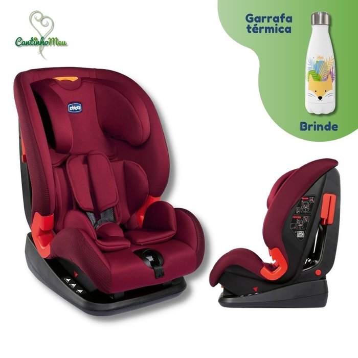 Cadeira para auto Akita INSTALAÇÃO SEGURA A instalação com o cinto de 3 pontos do veículo é muito fácil, basta seguir os guias indicados em vermelho. SEGURANÇA MÁXIMA Alça para posicionamento do cinto peitoral nos Grupos 2/3, garantindo maior segurança e conforto à criança CONFORTO Um mini redutor acolchoado acolhe a criança desde as primeiras viagens DESIGN Design incomparável GRUPO 1 A cadeira é instalada usando o cinto de 3 pontos do veículo, seguindo os guias vermelhos O redutor acolchoado e o sistema de recline acolhem os pequenos desde o primeiro uso GRUPOS 2 e 3 Graças ao encosto de cabeça ajustável, a cadeira acompanha o crescimento da criança desde os 9kg até 36kg. É instalada usando o cinto de 3 pontos do carro. + Garrafa térmica Luxo Com as garrafas térmicas de aço inoxidável Chicco Drinky, térmicas, é possível ensinar bons hábitos às crianças através de pequenos gestos diários. Tamanho grande (350ML)