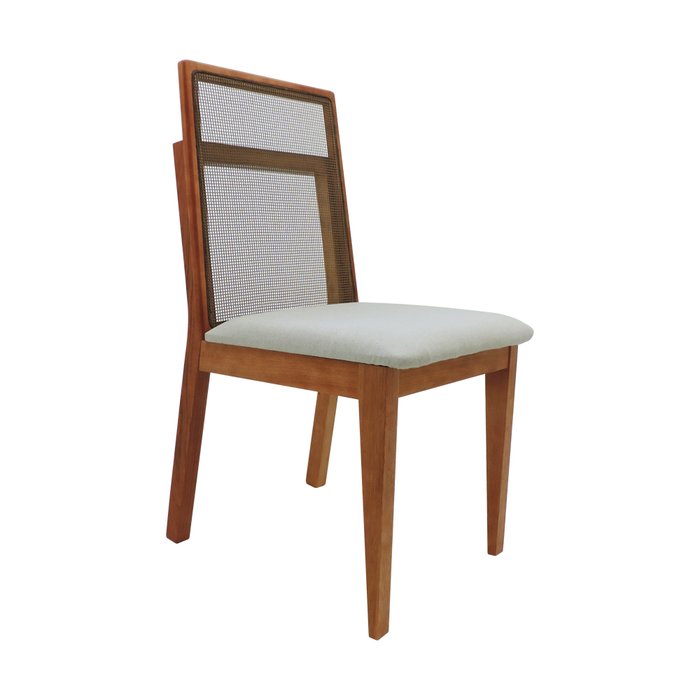Cadeira Alexia Tela - Tecido 35 - Cinza Claro Madeira Noce
