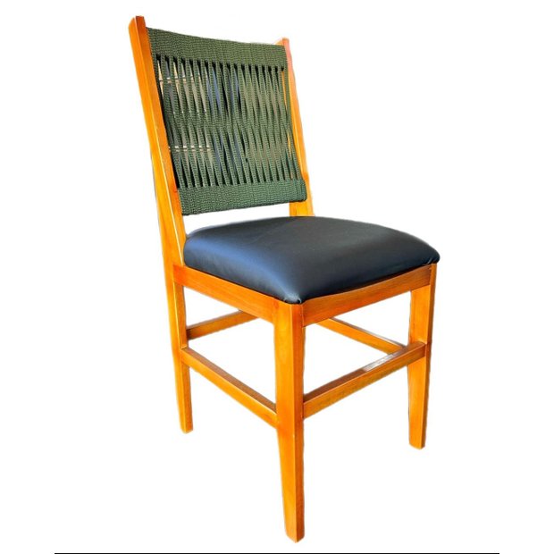 Revestido em Cordas Nauticas na verde musgo e assento estofado na cor preta