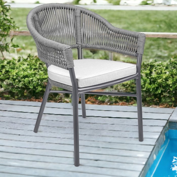 Cadeira Área Externa Alumínio com Corda Naútica Almofada Removível Bear Grafite G56 - Gran Belo