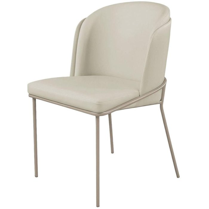 Cadeira Aurora Couro Pérola Metal Champanhe Bege