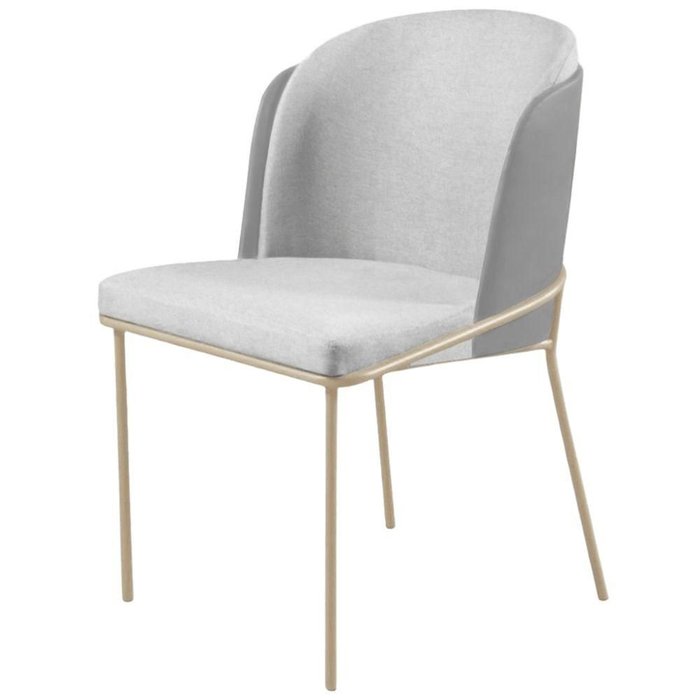 Cadeira Aurora Linho Cinza Couro Cinza Metal Champanhe Cinza