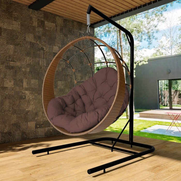 Cadeira Balanço Ninho Suspenso com Suporte e Almofada Impermeável Argila/Marrom