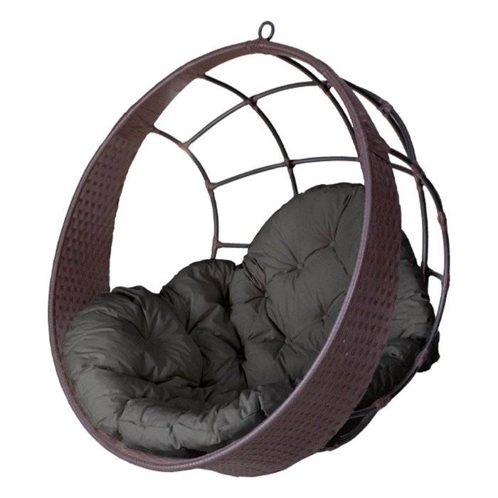 Cadeira Balanço Ninho Suspenso de Fibra com Almofada Impermeável Tabaco/Cinza
