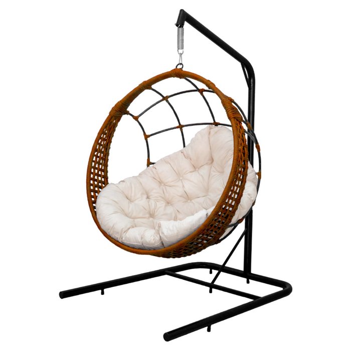 Cadeira Balanço Ninho Suspenso em Corda Náutica Luxo com Suporte Ocre/Branco