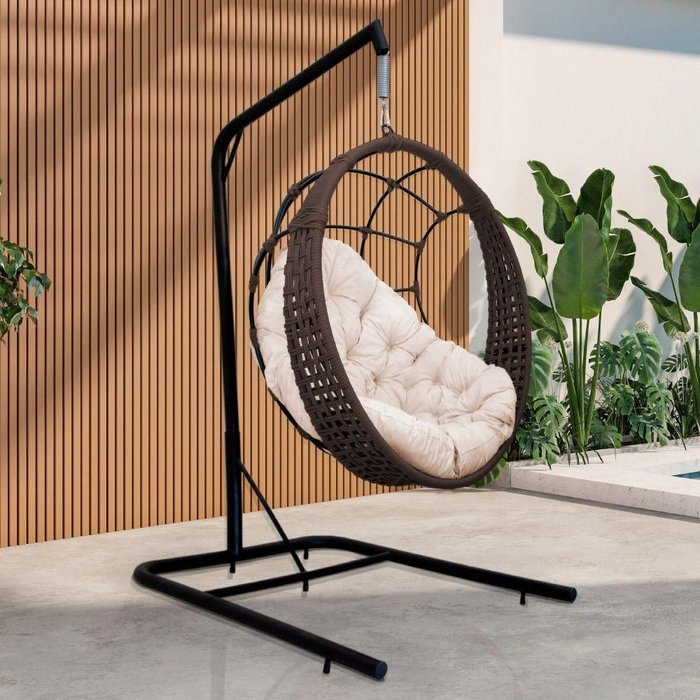 Cadeira Balanço Ninho Suspenso em Corda Náutica Luxo com Suporte Marrom-branco