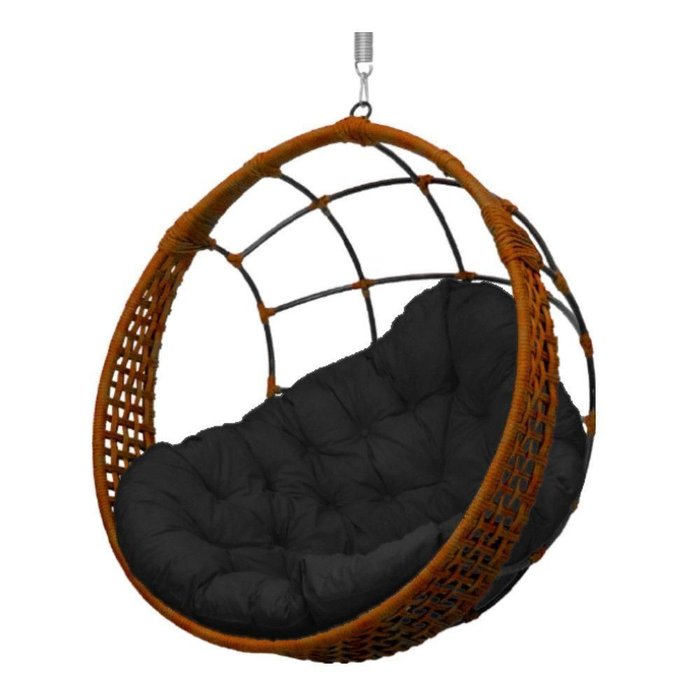 Cadeira Balanço Ninho Suspenso em Corda Náutica Luxo Ocre/preto