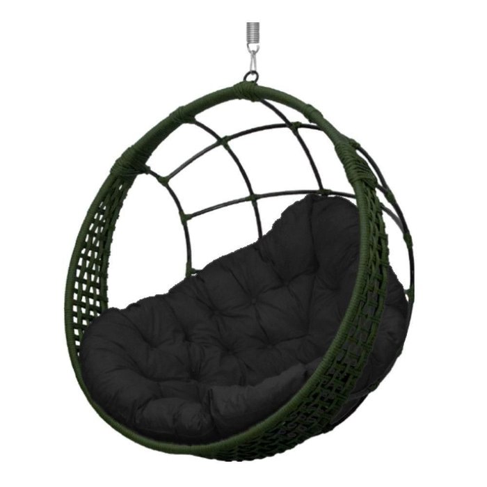 Cadeira Balanço Ninho Suspenso em Corda Náutica Luxo Verde/preto
