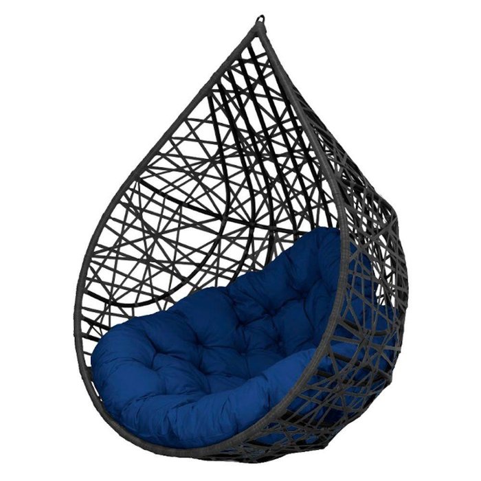 Cadeira Balanço Ninho Suspenso Gota Tramado C- Almofada Impermeável Acesse Móveis Preto-azul