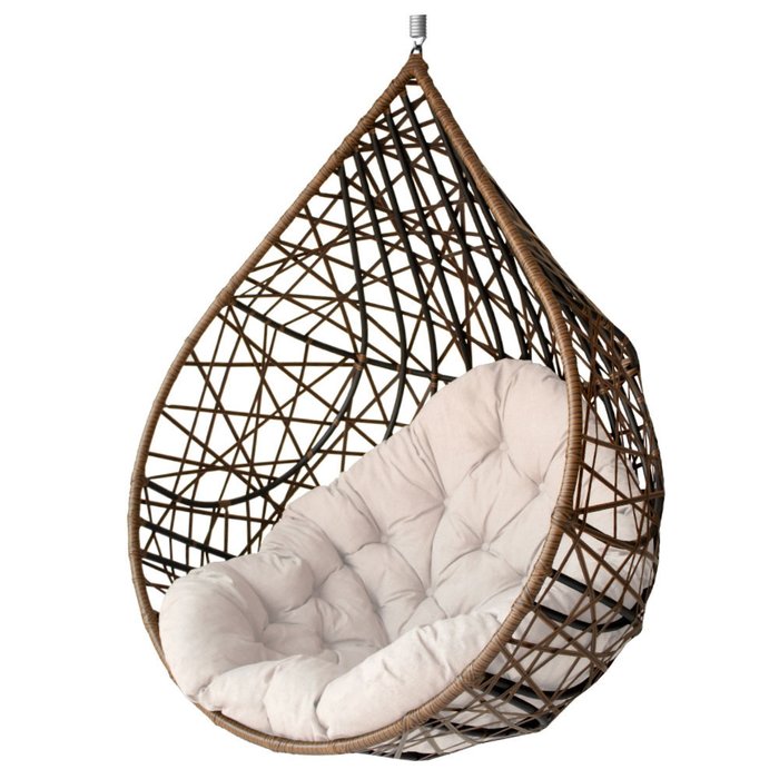 Cadeira Balanço Ninho Suspenso Gota Tramado com Almofada Impermeável Argila/Branco