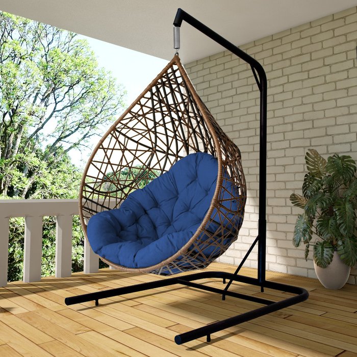 Cadeira Balanço Ninho Suspenso Gota Tramado com Suporte e Almofada Impermeável Argila/Azul