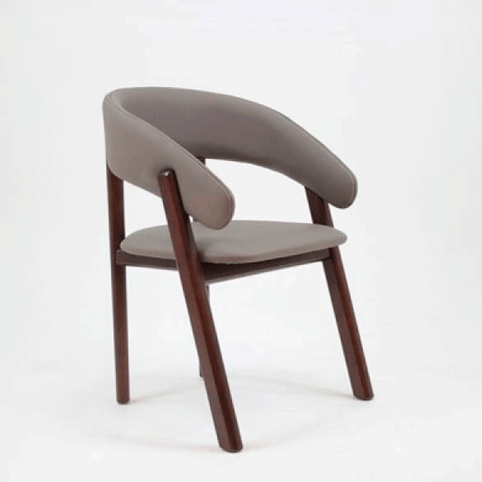 Cadeira com estrutura em madeira maciça, assento e encosto revestido com couro ecológico, couro natural ou tecido.