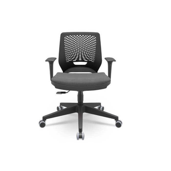 Cadeira Beezi Plaxmetal com Braços Reguláveis Encosto Preto Assento em Poliéster Cinza T57 Base Nylo Preto