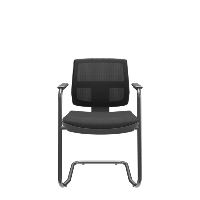 Os braços fixos com apoia braços em polipropileno injetado oferecem um suporte seguro e confortável para os braços, permitindo que você se sinta relaxado durante longas horas de trabalho. A estrutura em S contínua, fabricada em tubo industrial de aço carbono, garante durabilidade e estabilidade para uma experiência confortável durante todo o dia.