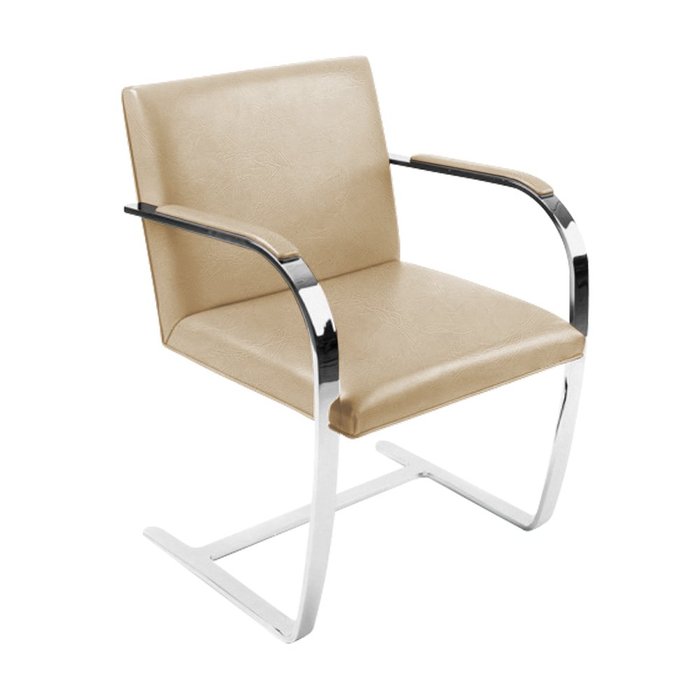 Cadeira Brno Couro Natural Bege Barra Chata Cromada