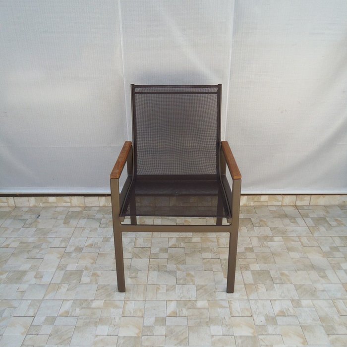 Cadeira Búzios - Alumínio Marrom com Tela Sling Marrom com Aplicação Em Madeira MÓVEIS E LAZER