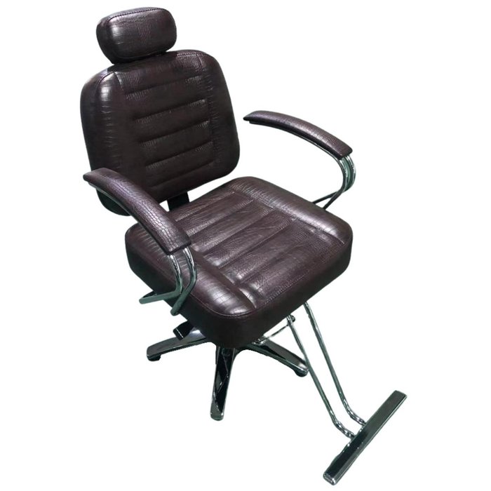 Cadeira Cabeleireiro Poltrona Barbeiro Encosto Reclinável Base Estrela Cromada Amortecedor Marrom