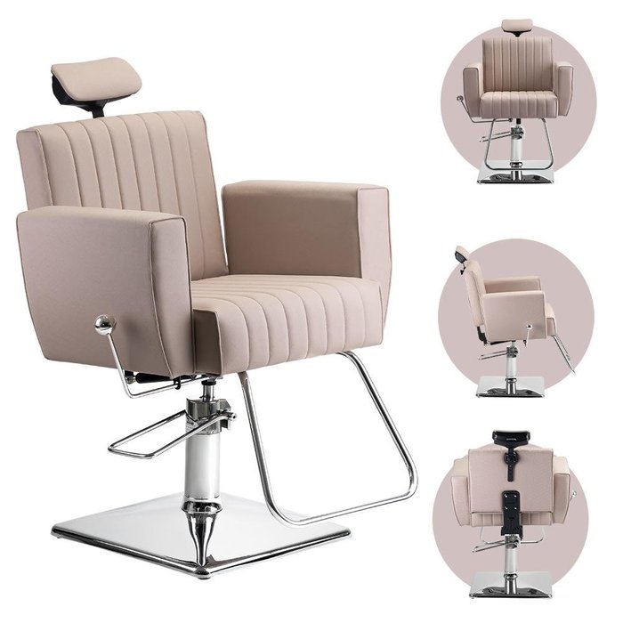 Cadeira Cabelereiro Barbeiro Poltrona Salão de Beleza Profissional Reclinável Estofado Apoio Pé Rose
