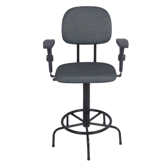 Cadeira secretaria caixa alta - braço com regulagem - apoio para os pés - estrela de ferro - espuma injetada - madeira reflorestada - bordas em pvc flexivel - revestido em tecido j. serrano anti-chama - prolongador de altura