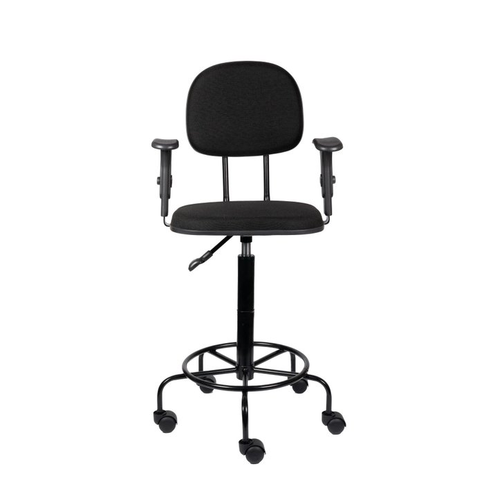 Cadeira Caixa Alta com Rodizios Bracos de Regulagem de Altura Atendimento Recepção Balcão Popmov Cai preta