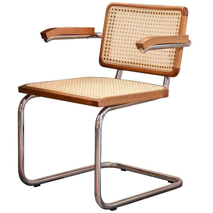 Cadeira Cesca com Braço Tela Sextavada e Base Aço Cromado - 70893