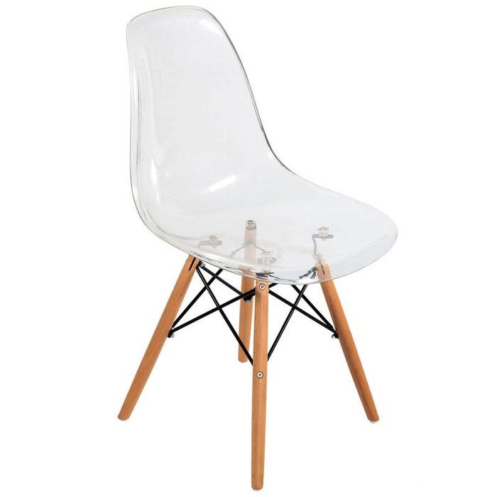 Cadeira Charles Eames, em Acrílico Transparente e Base em Madeira
