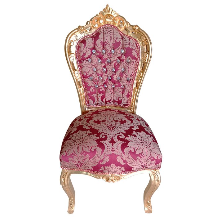 Esta cadeira é uma ode à beleza clássica, com sua tonalidade vinho profunda e os detalhes florais em dourado que a tornam verdadeiramente deslumbrante. Seu design curvilíneo e estofado macio oferecem conforto excepcional, tornando-a perfeita para momentos especiais e refeições refinadas.