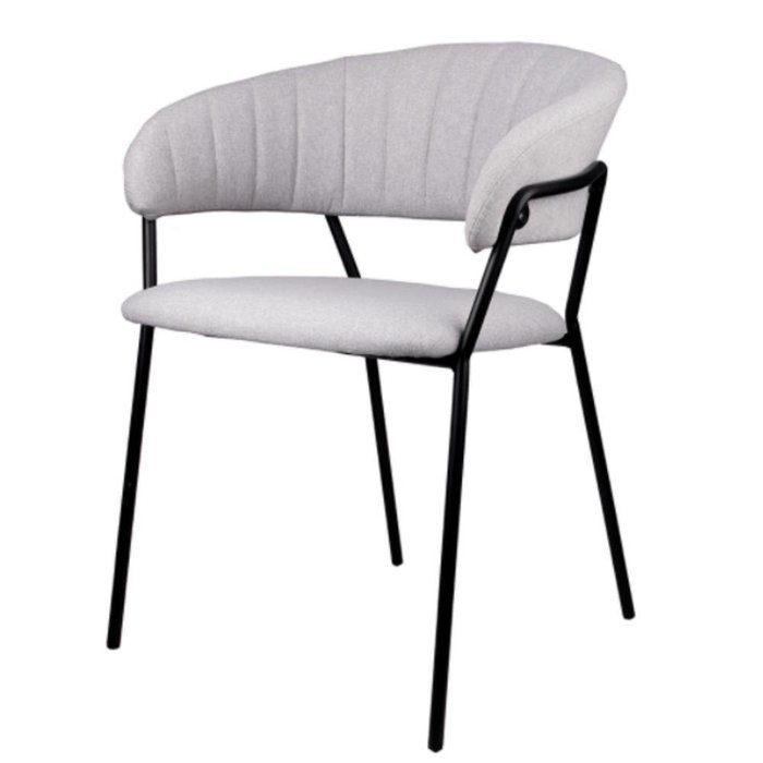 Cadeira com Braços Mara Rivatti Estofada em Linho Cinza Base em Aço Pintada a Pó Cinza