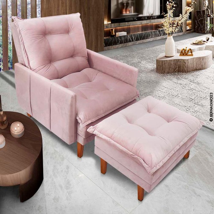 Cadeira com Puff Veludo Rose Canada Jm Móveis Rose