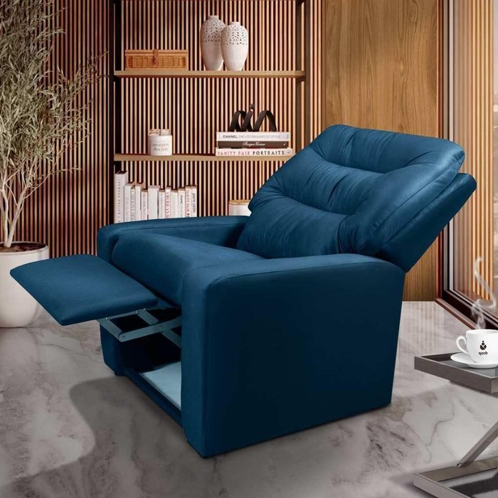 Cadeira Confortável Velveteen Azul Turquia Jm Móveis