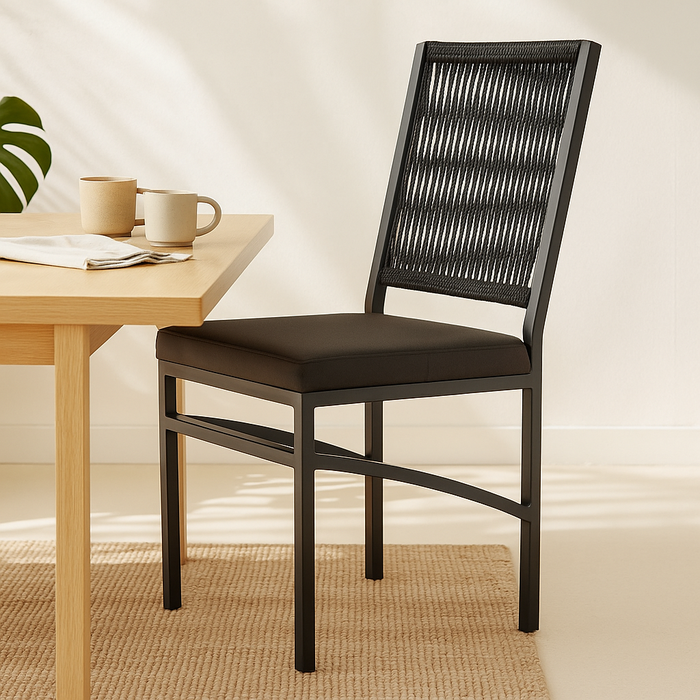 Cadeira Corda Nautica Preta Varanda Sacada Cozinha Tinta Eletrostática