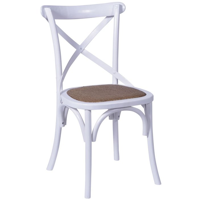 Cadeira Cross Verônica Lisa Com Assento Em Rattan E Base Madeira 126 - Bella Brasil Decor Branca Branca