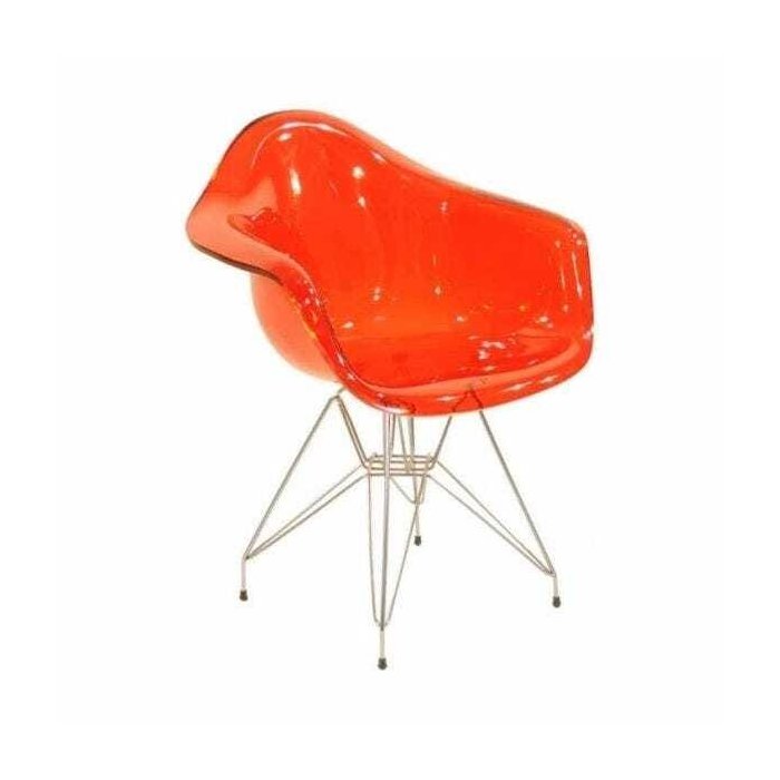 Cadeira Dar Charles e Ray Eames Acrílica Base Torre Eiffel Laranja Laranja