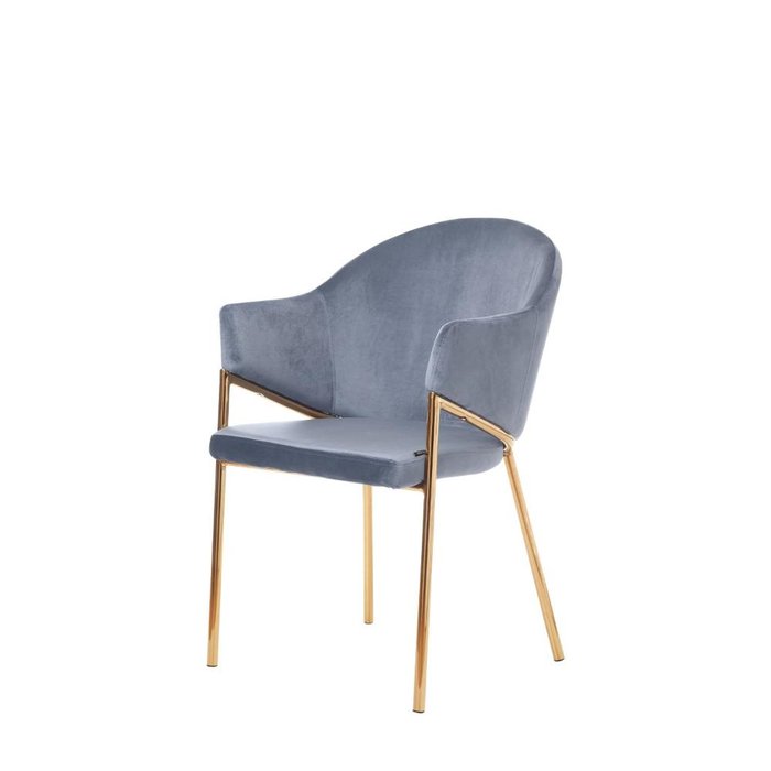 Cadeira de Aço Estofada com Braços Crimson - Dourado C/ Veludo Azul Jeans