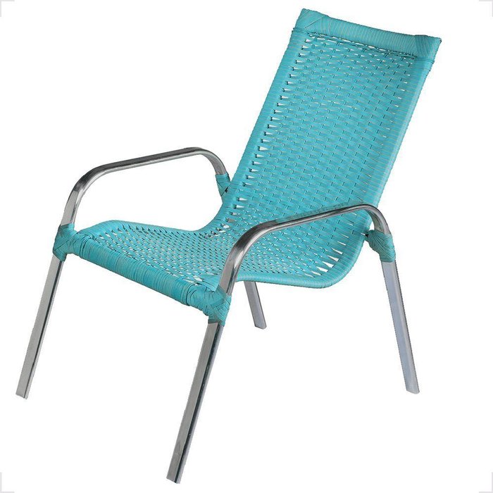 Cadeira de Alumínio Área Externa Fortaleza Fibra Sintética Trama Artesanal Cor:turquesa Azul Turquesa