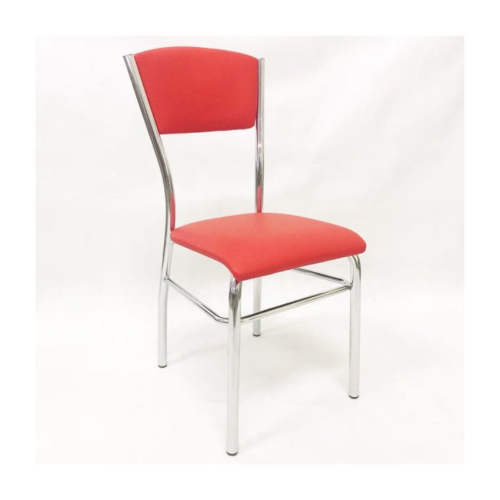 Cadeira de Cozinha com Reforço Cromada Assento e Encosto Vermelho - Poltronas Do Sul