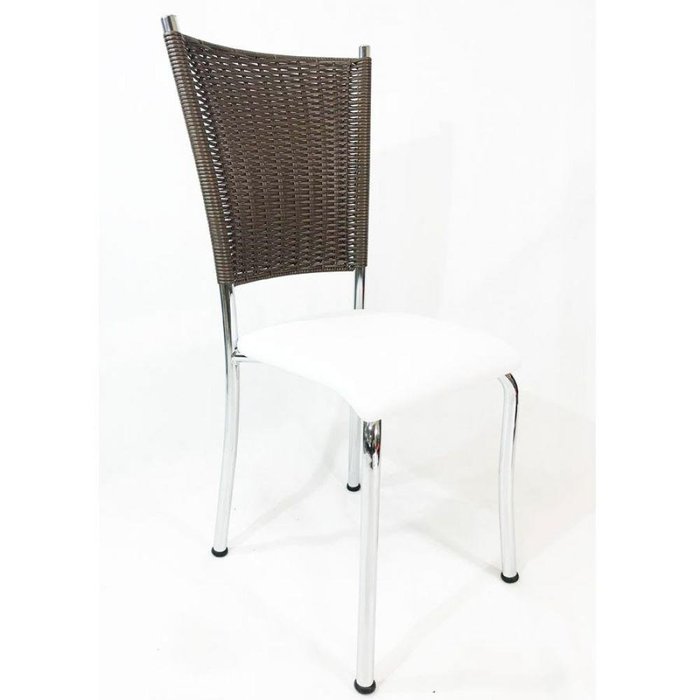 Cadeira de Cozinha Cromada Fibra Sintética Tabaco Assento Branco Poltronas do Sul