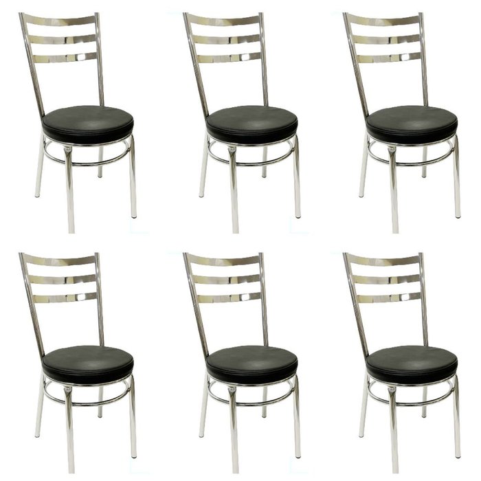 Cadeira de Cozinha Redonda com Reforço Cromada Assento Grosso Preto Kit 6 Unidades
