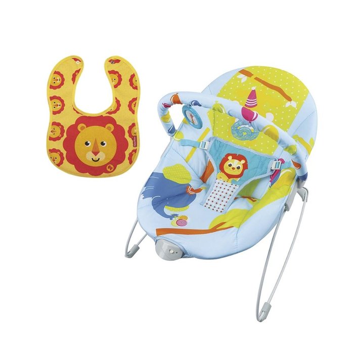 Cadeira De Descanso Bolinhas Arco Weeler Azul + Babador Impermeável Leão Fisher Price Amarelo
