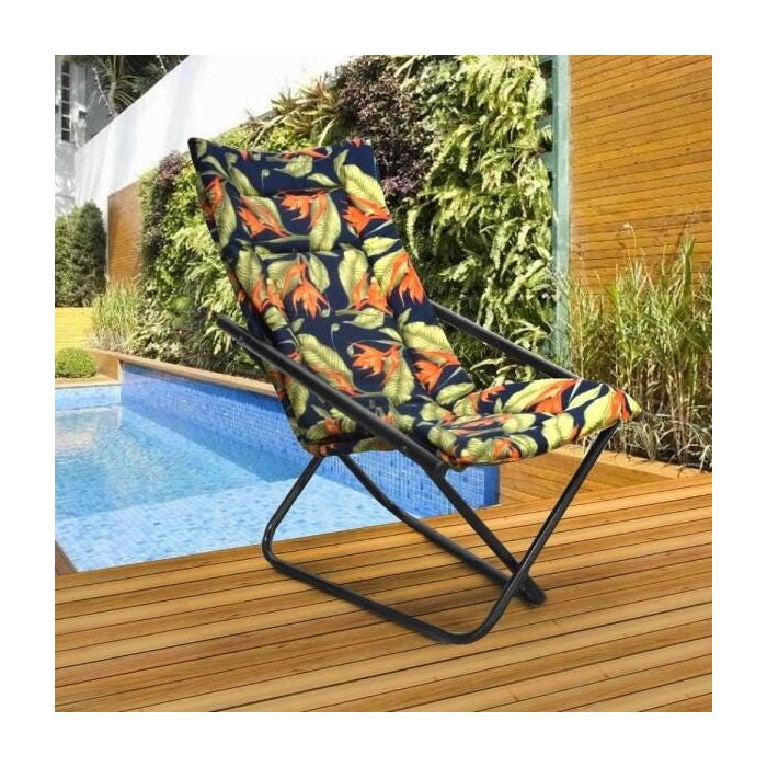 Cadeira de Descanso Dobrável Mônaco Metalmix Azul Floral
