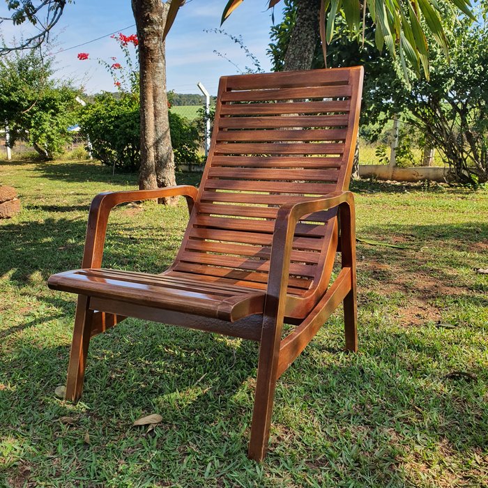 Cadeira De Descanso Em Madeira Maciça cor Marrom para Jardim